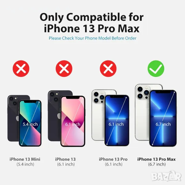 • Уникална съвместимост: Моля, потвърдете своя модел за iPhone („Настройки“, „Общи“, „Информация“, „Име на модела“), този удароустойчив калъф е съвместим САМО с iPhone 13 Pro Max (6,7-инчов екран). Забележка: НЕ е съвместим с iPhone 13 Mini, iPhone 13 и iPhone 13 Pro