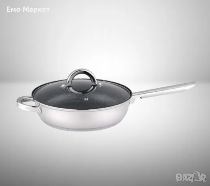 Тиган от висококачествена неръждаема стомана и мраморно незалепващо покритие.