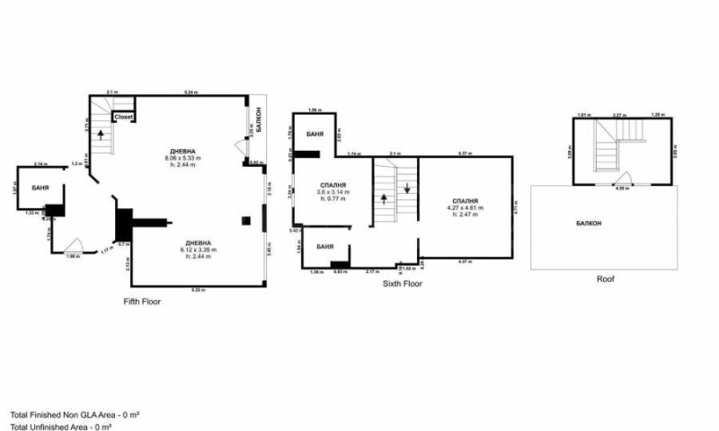 Етажи: 6, 7 и 8 (триплекс)