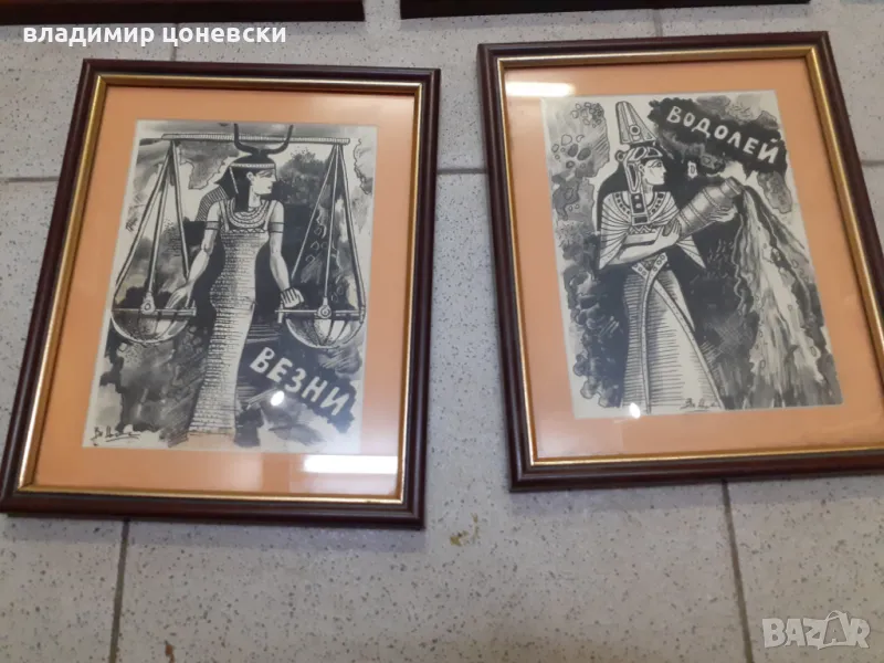 Графики в рамки и стъкло-зодии,авторски принт,Размер с рамката 21/25 см.Оригинален подарък за Вашите приятели,цената е за един брой