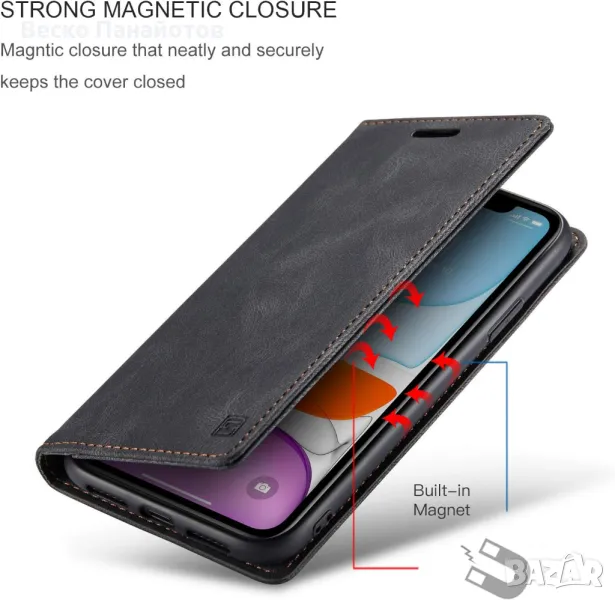 Калъф кожен за iPhone 11, магнитен флип → Обява 49468134