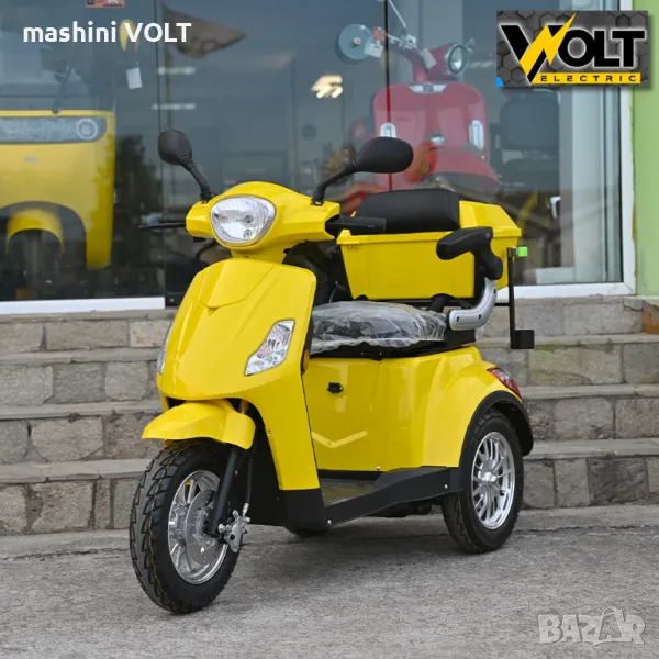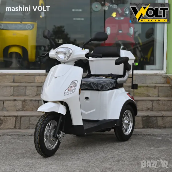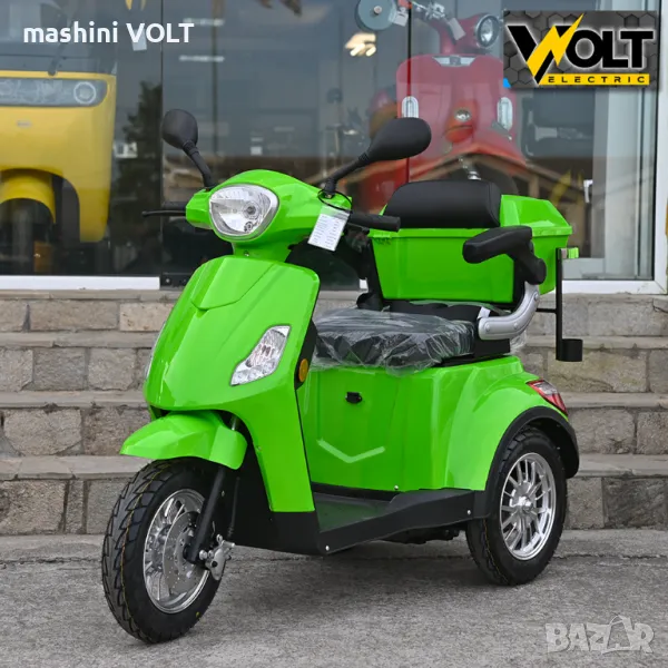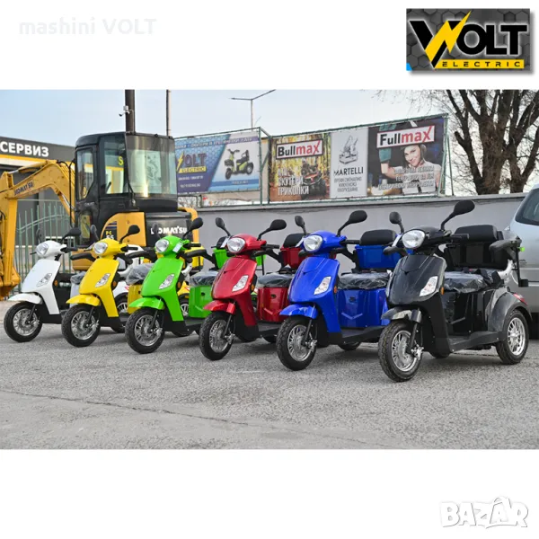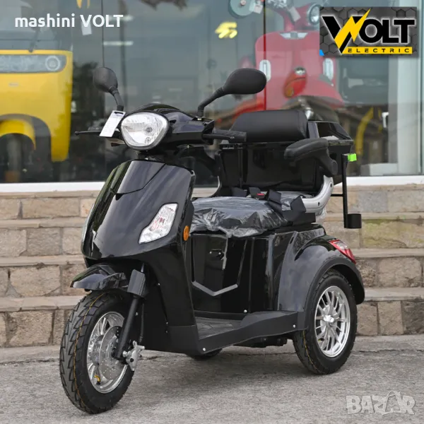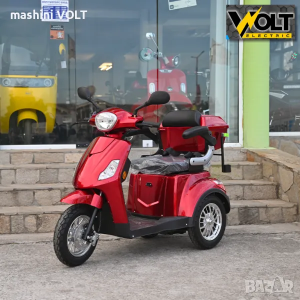Eлектрическа триколка за възрастни и трудноподвижни лица Volt Electric FM1. Електрическата триколка е последен модел и е абсолютен хит. Тя се предлага с някои подобрения от предходния модел - в окачването, контролера, спирачките и най-важното тя е снабдена с три вида скорости - бавна, средна и бърза /с плавен старт/. Модела е снабден с висококачествена пластмаса и последен модел алуминиеви джанти. Без аналог на нашия пазар спрямо качество - цена. Триколката е снабдена с рекуперация и магнитна спирачка- при отпускане на газта или спускане по наклони зарежда батерията и осигурява спиране, без натискане на предна или задна спирачка.