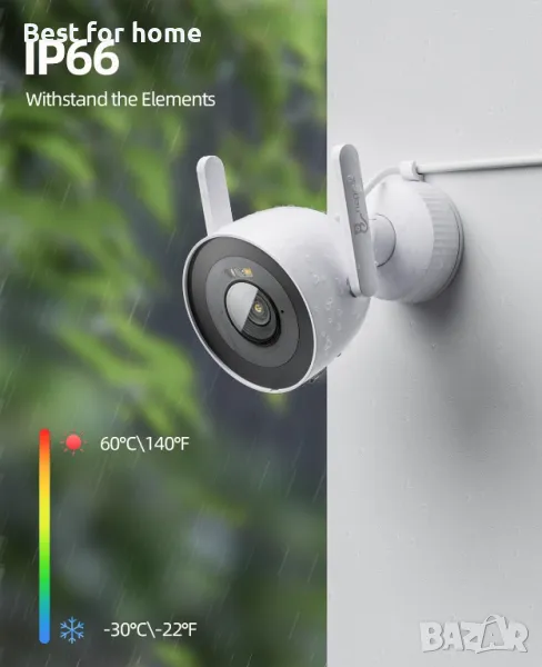 Увеличете сигурността си с IP66 водоустойчив рейтинг на тази WiFi камера, гарантиращ издръжливост на закрито и на открито при всякакви метеорологични условия. Комуникирайте лесно чрез вградения микрофон и високоговорител, улеснявайки взаимодействието със семейството или възпирайки натрапниците без усилие.