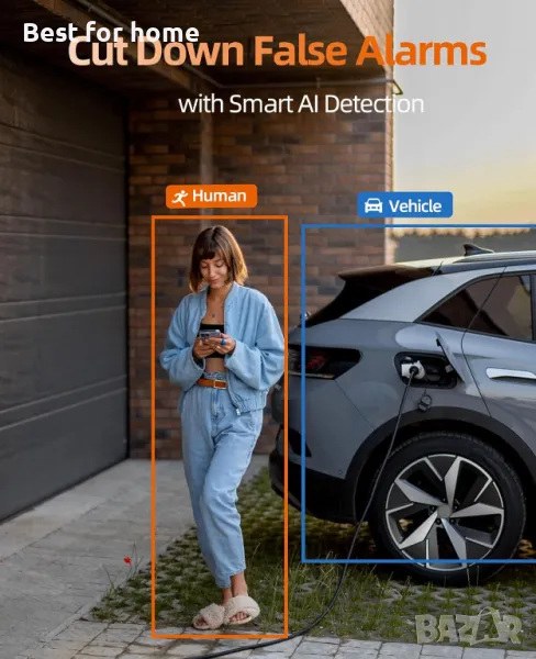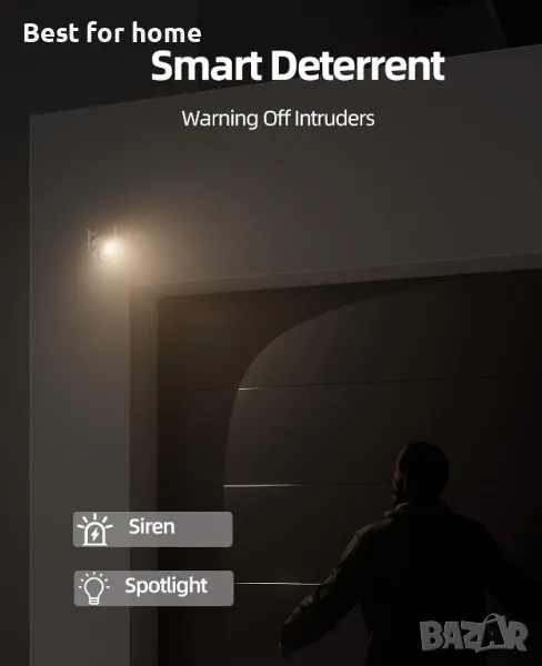 Подобрете сигурността на дома си с AI Motion Detection & Smart Deterrent. Тази камера точно открива хора и превозни средства, като изпраща незабавни сигнали за откриване на движение, за да ви държи информирани в реално време. Освен това разполага с вградена мигаща светлина и сирена, за да изплаши натрапниците, повишавайки сигурността на вашия дом.