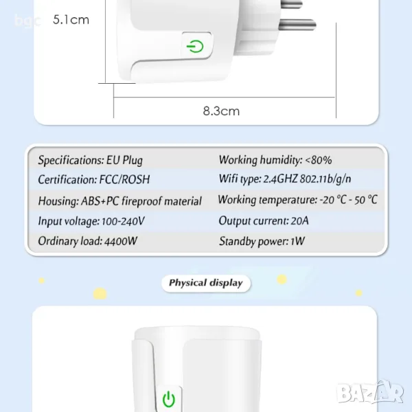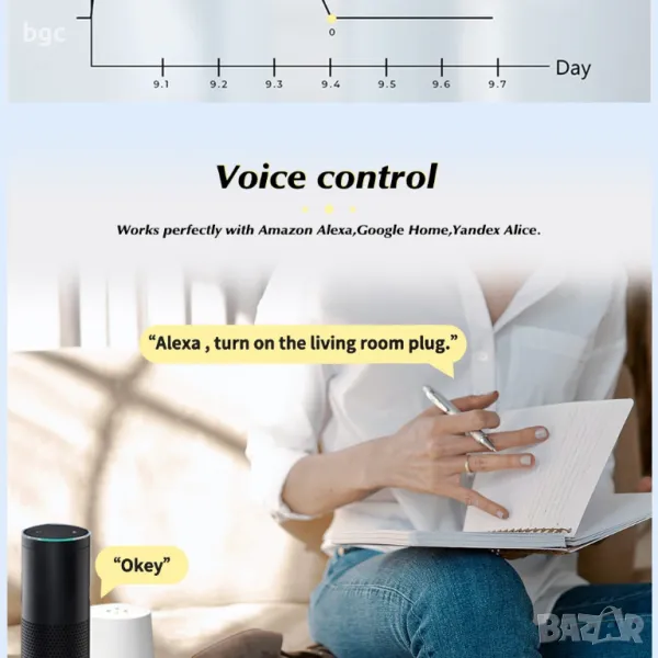 - Гласов контрол - Управлявайте smart контакта с гласови команди чрез Amazon Alexa или Google Assistant