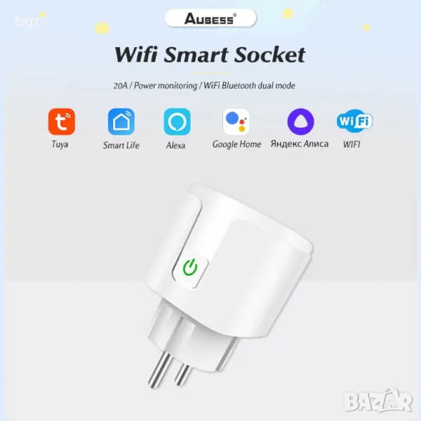 НОВ 20А 4400Watt Смарт Контакт Умен Щепсел Smart Wi-Fi Bluetooth Управление