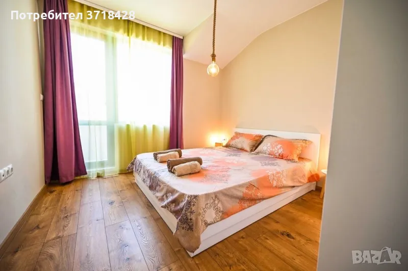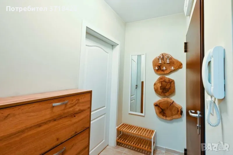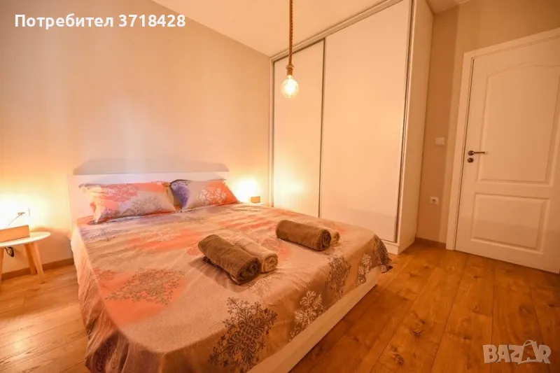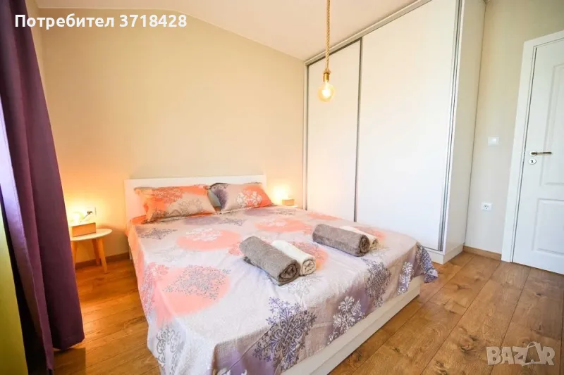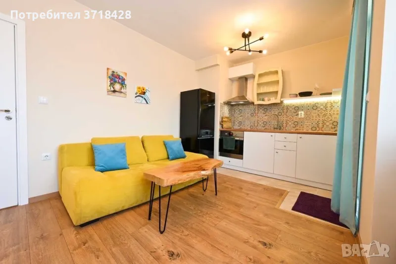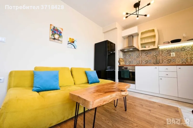 Двустаен уютен и напълно обзаведен апартамент, намиращ се на колхозен пазар и в непосредствена близост до магазин BILLA. Центърът е на 10-15 минутки разходка. В близост има училища и детски градини. Година на строеж на кооперацията - 05.2020. Сградата разполага с асансьор и малка стаичка за общо споделено ползване за дребни вещи. Жилището се състои от дневна, спалня, баня с тоалетна, коридор и две тераси. Гардеробът е така проектиран, че да има изобилие от място за съхранение, както и спалнята, чийто матрак е с хидравличен механизъм и под нея също има изобилно пространство за съхранение на вещи, които не се ползват ежедневно. Диванът в дневната е разгъваем и под него също има пространство за съхранение. Изложение на жилището - изток/запад. Масите са от масивно дърво - ръчно изработени. Има пералня, фурна, хладилник, аспиратор, бойлер, климатик, телевизор, сензорни котлони. Всички електроуреди са висок енергиен клас. Хиперинверторен климатик MITSUBISHI 12-ка. Тъй като жилището е сгушено от всички страни и е слънчево, дори през по-студените месеци остава с блага топлина. Дограмата е PVC, а към жилището има и маза 3кв.м.