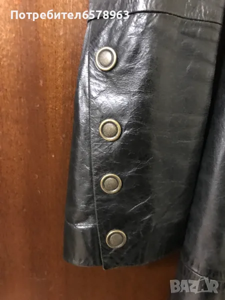 Продавам дамско марково яке от естествена кожа . Якето е запазено . Има два странични джоба и един вътрешен с цип . Закопчава се с големи копчета . Отстрани има копчета за стесняване . Размер 38 . Дължина на якето 101 см. от рамото до долу .ширина на подмишниците 41-42 см. . Цвят - черен .