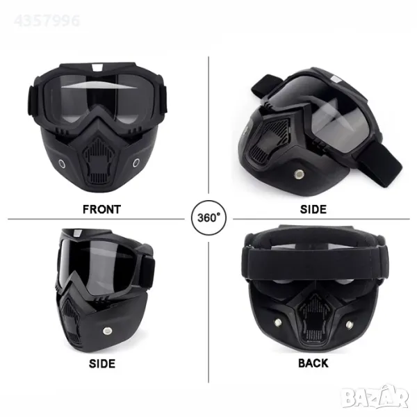 Мото маска с визьор – идеален аксесоар за мотористи, осигуряващ защита и комфорт при всякакви метеорологични условия. Очилата осигуряват ясна видимост, като предпазват от вятър, дъжд и прах, а същевременно маската предлага допълнителна защита за лицето и кожата. Удобна и стилна, тя осигурява комфорт при дълги пътувания. Подходяща за всички мотористи, които търсят защита и практичност на пътя.
