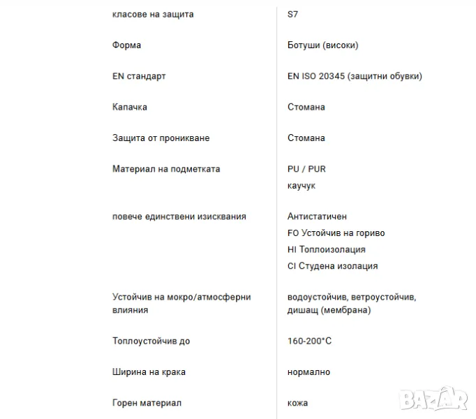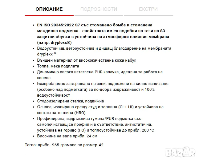 EN ISO 20345:2022 S7 със стоманено бомбе и стоманена междинна подметка - свойствата им са подобни на тези на S3-защитни обувки с устойчива на атмосферни влияния мембрана (напр. dryplexx®)