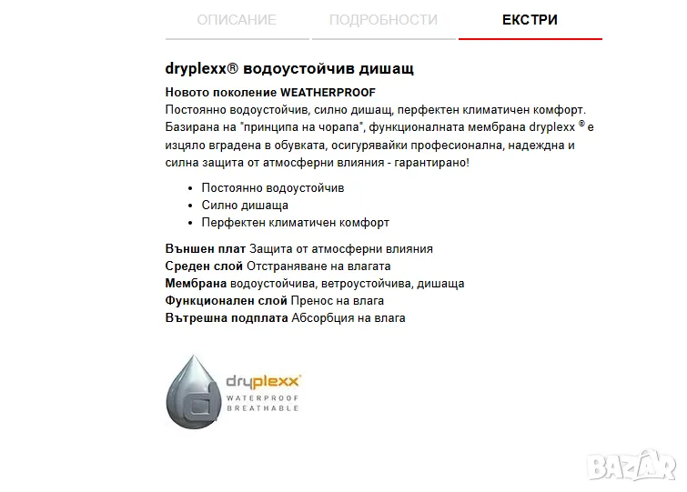 Водоустойчив, ветроустойчив и дишащ благодарение на мембраната dryplexx ®
