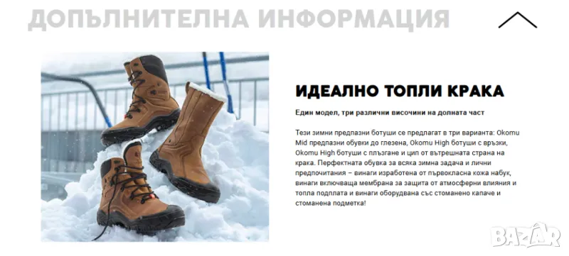 За всеки, който работи на открито по цял ден при минусови температури, зимното оборудване е задължително! Моделите за безопасност Okomu уверено поемат студа, като поддържат краката надеждно топли дори при минусови условия, докато меката вътрешна подплата осигурява изключителен комфорт. Снабдени със стоманена шапка, стоманена подметка и мембрана dryplexx®, моделите Okomu са сигурни и надеждни спътници, предлагащи комфорт за защита от атмосферни влияния.