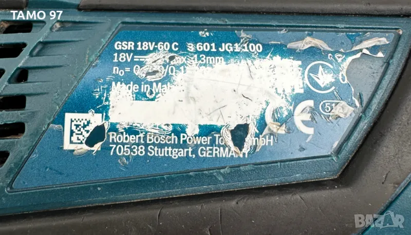 Марка и модел: Bosch GSR 18V-60 C Напрежение на мотора: 18V