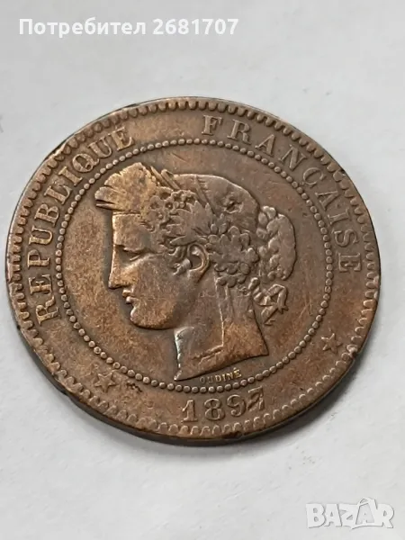 много стара монета Франция 10 сантима 1897 маркировка/факел/ в дясно рядко срещана