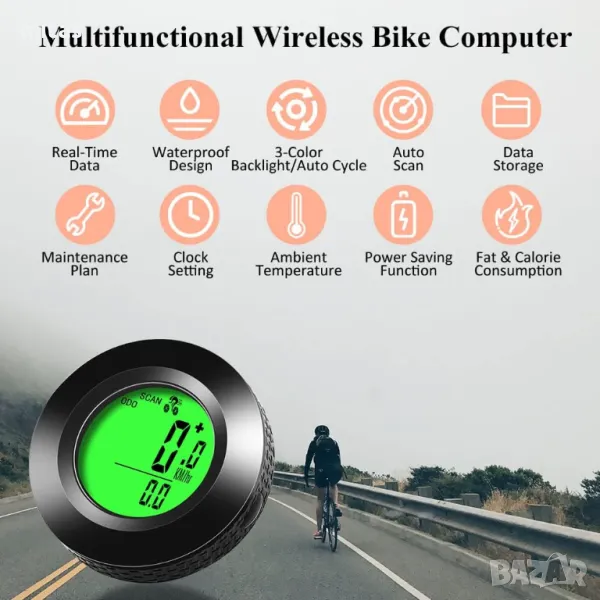• С подобрен чип, този велосипеден компютър предлага още по-добра скорост на предаване и стабилност. Той измерва скорост, разстояние, време за каране, изгорени калории и много други. С функцията за автоматична памет, той е подходящ за шосейни велосипеди, планински велосипеди и почти всички стандартни модели.
