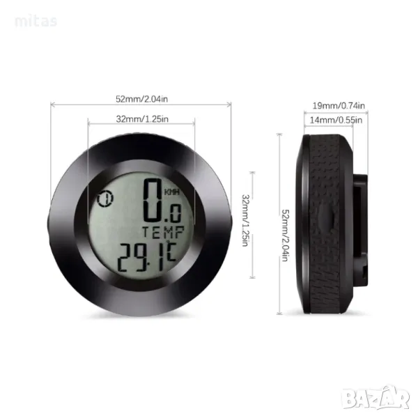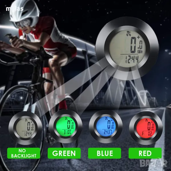 Велокомпютър с 20 функции, Трицветна LED подсветка, Кръгъл, 52х52мм