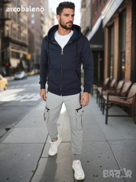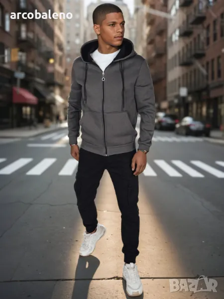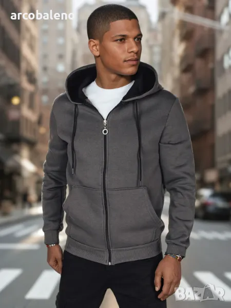 Удобна мъжка качулка с цип, проектирана с ежедневен стил. Моделът е снабден с функционален джоб и регулируема качулка, което го прави идеален избор за по-студените дни. Еластични маншети и подгъва прилягат и предпазват от вятър.