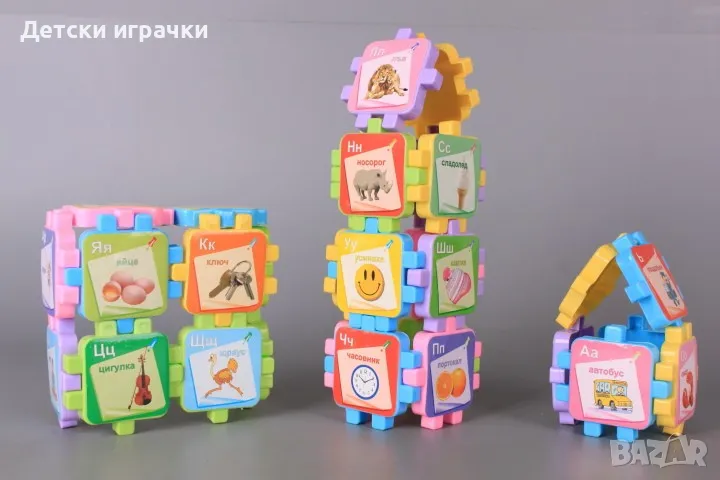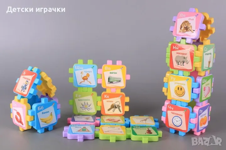 Пъзел конструктор с букви и картинки, български език, образователен → Обява 49472647