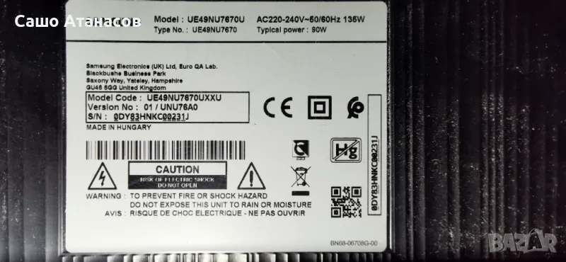 SAMSUNG UE49NU7670U със счупена матрица ,BN44-00932C ,BN41-02635B ,CY-CN049HGLV5H ,WCM730Q → Обява 49473009