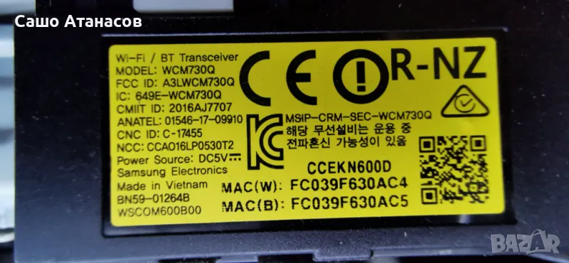 Wi-Fi/BT Transceiver: WCM730Q / BN59-01264B - 25лв.