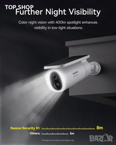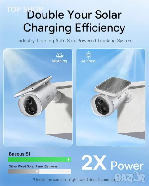 Външна безжична охранителна камера Baseus S1 със соларен панел,2К,145°