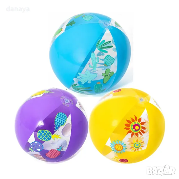 Добавете настроение към летните си приключения с надуваемата плажна топка Bestway Groove’n Splash Beach Ball! С диаметър 51 см и три свежи дизайна – жълт със слънца, лилав с ананаси и син с кактуси – тази топка е перфектният избор за плаж или басейн. Изработена от здрав винил, тя е лека, лесна за надуване и устойчива на пръски. Независимо дали играете във водата или на пясъка, тази топка ще осигури незабравими мигове на забавление!