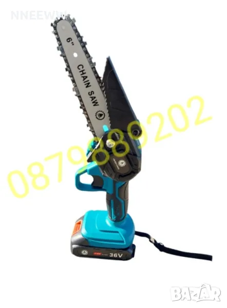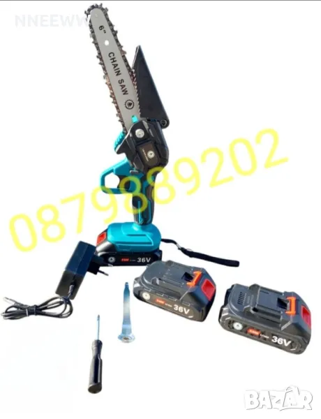 Акумулаторна Резачка за клони 36V 8,0AH ТАЙГА 6 инчаверижен трионВИСОКА ЕФЕКТИВНОСТ – Акумулаторен верижен трион може да отрежете за около 10 секунди дървена греда с диаметър 10 cm. в зависимост от действителния размер и твърдост на дървесината. Този трион е много подходящ за рязане на дърво, подрязване на клони на дървета, градинарство.ИЗПОЛЗВАНЕ С ЕДНА РЪКА – Тази мини моторна резачка е с тегло само около 750 грама и дължина 33 см. Всеки може лесно да го използва, не е уморително за дълго работно време.ЛЕСЕН МОНТАЖ – Целият верижен трион е инсталиран, трябва само да използвате гаечния ключ, за да завъртите винта и да регулирате веригата, и накрая да затегнете винта. Не е необходимо да инсталирате веригата отделно.СИГУРЕН – Интегрираната направляваща плоча може бързо да разсейва топлината, защита от претоварване и е много устойчива на падане и износване. Страхотно за вашите различни нужди.Комплекта съдържа:– Акумулаторен Трион 36V: 1 брoй– Батерия 8,0Ah: 2 броя– Верига 6инча: 2брой– Шина: 1 брой– Зарядно устройство: 1бр– Инструменти за сглобяване: 2бр– Куфар: 1 брой