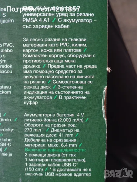 Акумулаторен уред за рязане на ПВЦ, килими, картон,кожа или платове! → Обява 49475032