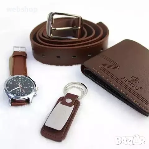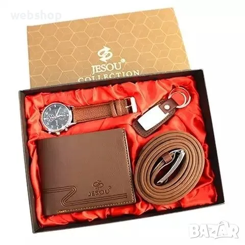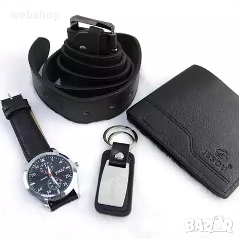 Луксозен мъжки подаръчен комплект JESOU COLLECTION - Часовник, Колан, Ключодържател, Портфейл → Обява 49475040