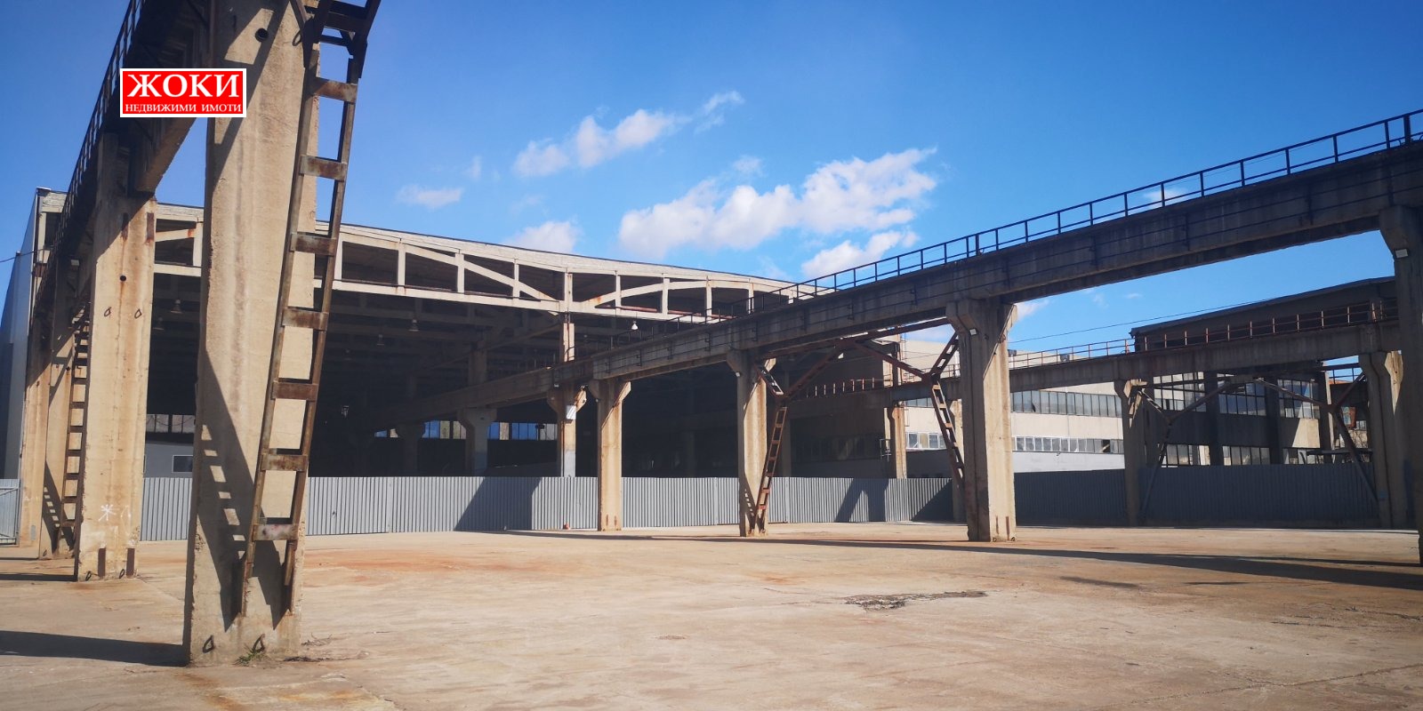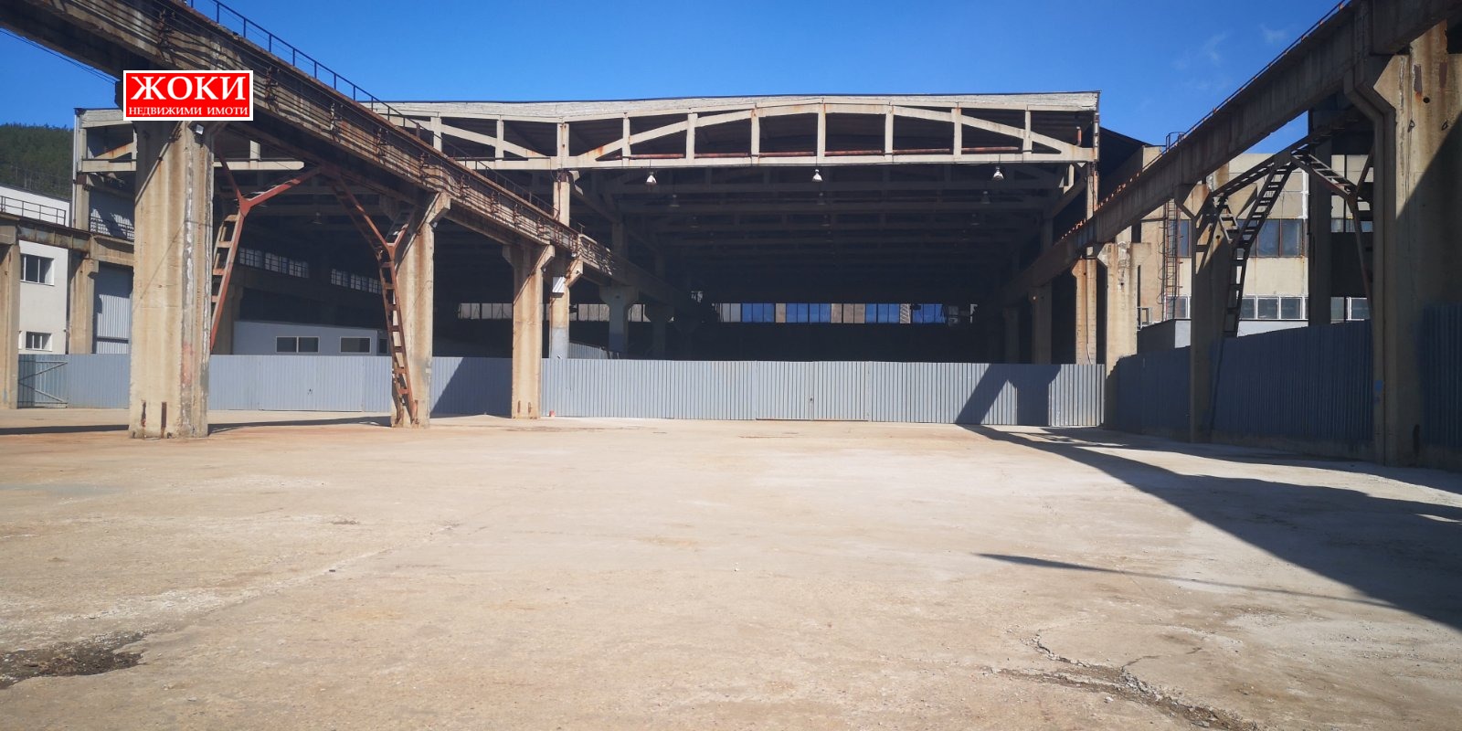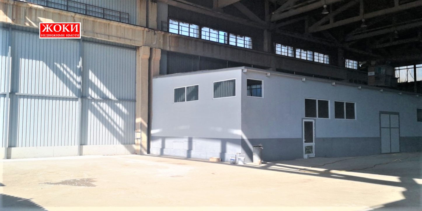 - хале със стоманобетонна конструкция с площ от 2305 кв.м. и височина около 13 метра. Разделено е на две с гофрирана ламарина. В едното са изградени две помещения: едно с площ от около 230 кв.м., височина 4 метра, с портална врата, трифазен ток и вода вътре; второ с площ от около 100 кв.м., състоящо се от 4 помещения, подходящи за офиси, съблекални и др.