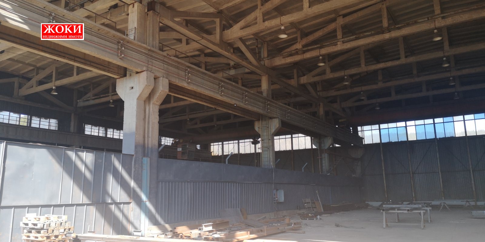 - хале със стоманобетонна конструкция, с площ от около 130 кв.м., височина 4.50 метра портална врата, с трифазен ток и вода.