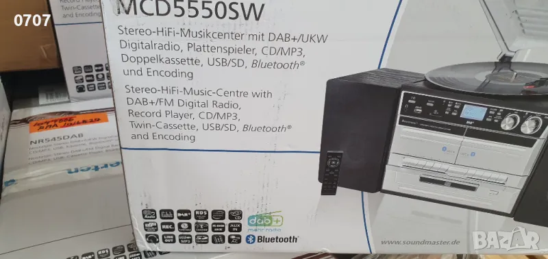 Soundmaster MCD5550SW FM DAB+ радио с двойна касета, CD-MP3, грамофон 33/45/78 rpm, Bluetooth и функция за кодиране