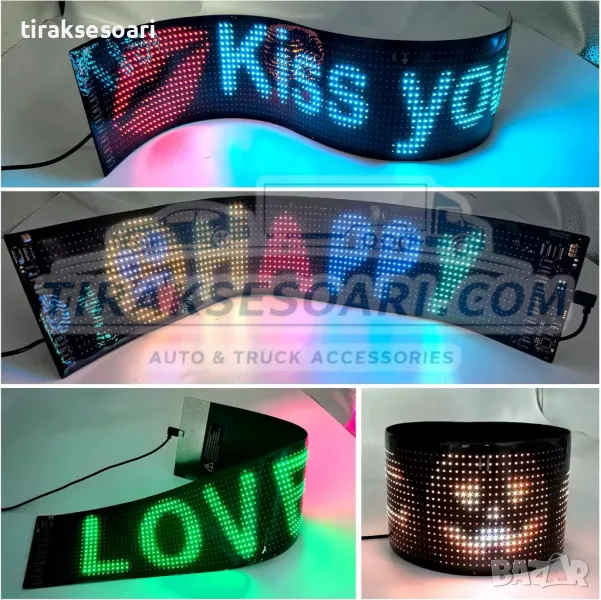 Дисплеят е изработен от тънък и лек материал, който може да се огъва и адаптира към различни повърхности. Перфектен за монтиране на предни стъкла, задни прозорци и други места.