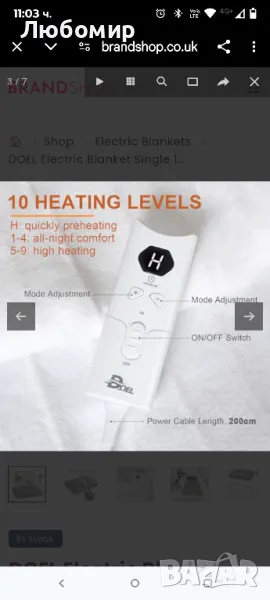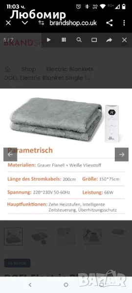 Единично електрическо одеяло DOEL 150x75 см, 66 W фланелено подгрявано одеяло с 10 нива на нагряване, 3/12 часа таймер за автоматично изключване и LED дисплей, може да се пере в пералня, 220-230 V, 50-60 Hz, сиво.