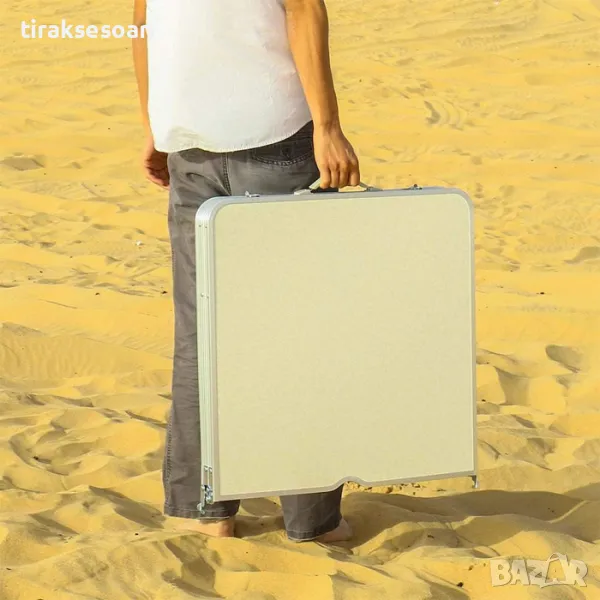 Масата е оборудвана с дръжка, която улеснява пренасянето на сгънатата форма.