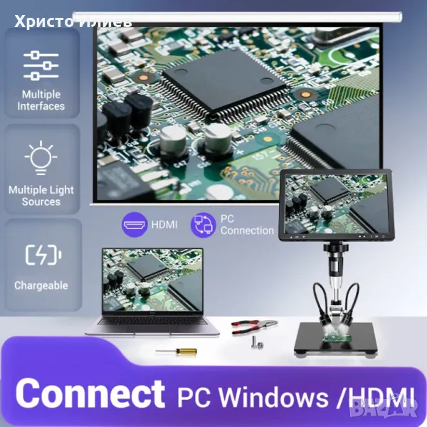 HDMI-съвместимият цифров микроскоп MUSTOOL DM12 е устройство, което открива нови измерения в прецизната инспекция и електронното запояване. Оборудван със 10,1-инчов IPS дисплей, микроскопът предлага 2000x увеличение, което позволява детайлно изследване на цели монети или малки електронни компоненти.