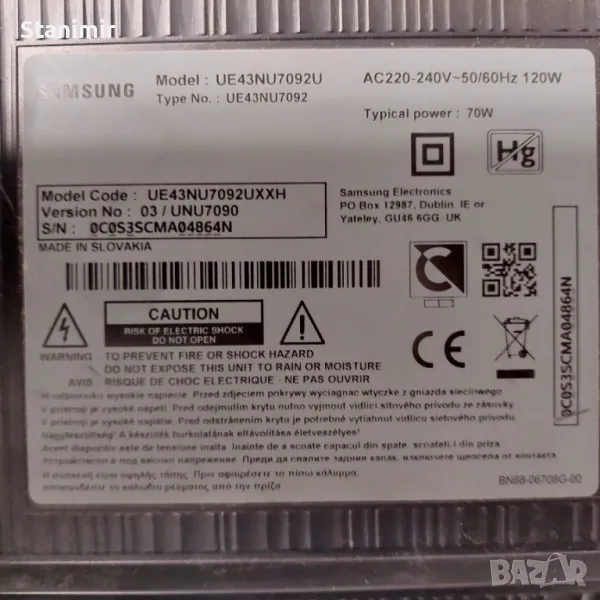Samsung телевизор 43 инча за части, използвано → Обява 49476559