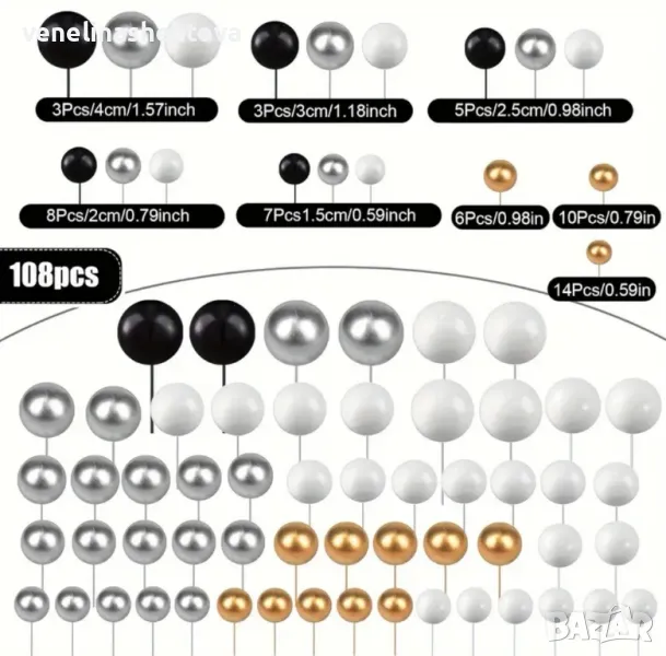 108 броя топчета топки на тел от стиропор за декорация на торта черен сребрист бял златист цвят, снимка 1 - Други - 49476935 108 броя топчета топки на тел от стиропор за декорация на торта черен сребрист бял златист цвят, снимка 2 - Други - 49476935 108 броя топчета топки на тел от стиропор за декорация на торта черен сребрист бял златист цвят, снимка 3 - Други - 49476935 108 броя топчета топки на тел от стиропор за декорация на торта черен сребрист бял златист цвят, снимка 4 - Други - 49476935 1/4
