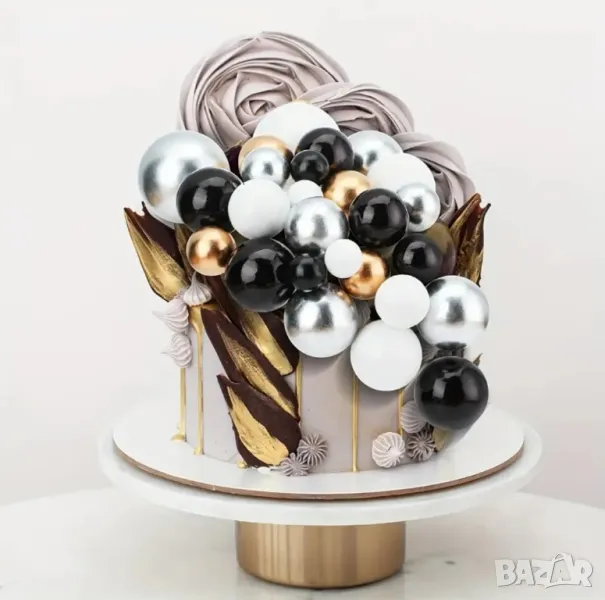 108 броя топчета топки на тел от стиропор за декорация на торта черен сребрист бял златист цвят → Обява 49476935