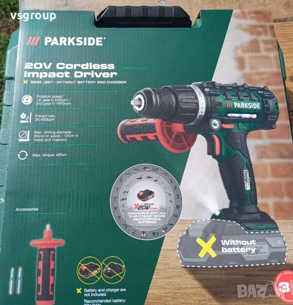 Акумулаторна Ударна бормашина Parkside PSBSA 20-Li C3. Нова