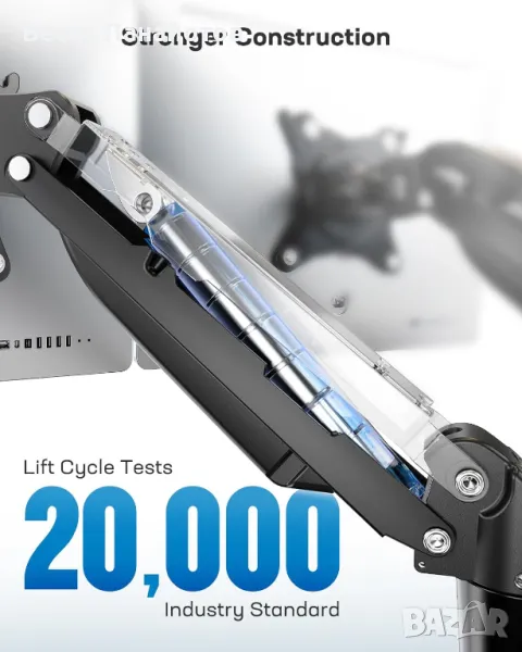 - Регулируема стойка за двоен монитор: Нашата стойка за двоен монитор осигурява изключителна стабилност под всякакъв ъгъл без допълнителна настройка. С диапазон на наклон от -30° до +85°, завъртане на 180° и въртене на 360° можете без усилие да настроите екраните си на оптимален ъгъл на гледане. Конструкцията с газова пружина също ви позволява да повдигнете екраните си до 40 см от работния плот с лекота.