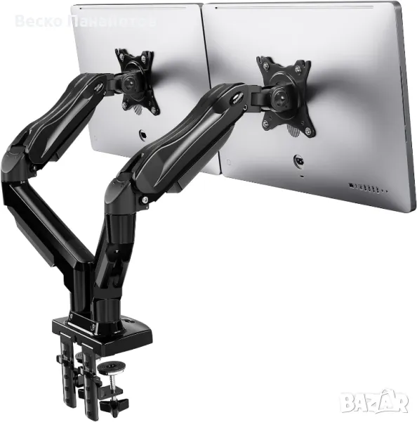 Стойка за двоен монитор HUANUO за екрани от 13 до 32 инча, стойка за бюро с рамо за два монитора за извити плоски екрани, опора за рамо за двоен монитор VESA 75 и 100 mm. Марка