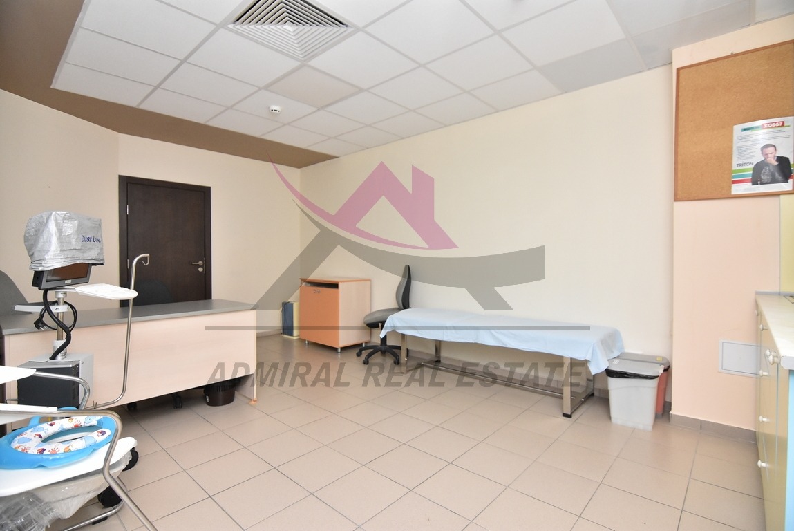 Агенция за недвижими имоти Адмирал Риъл Естейт предлага на Вашето внимание Медицински център за ПРОДАЖБА в кв. Младост, гр. Варна 812 кв.м Предлагаме за продажба/наем просторен медицински център, разположен на 4-ти етаж в сграда в кв. Младост, гр. Варна. Имотът разполага с обща площ от 812 кв.м и включва 19 самостоятелни помещения, подходящи за различни медицински дейности, кабинети, лаборатории или рехабилитационен център. КОМУНИКАТИВНА ЛОКАЦИЯ В близост до лечебното заведение са разположени няколко автобусни спирки. Сградата разполага и с голям паркинг. УДОБНО МЕСТОПОЛОЖЕНИЕ В сградата са разположени редица клинични лаборатории, рентген, скенер, аптека, общопрактикуващи лекари, стоматологични кабинети,
