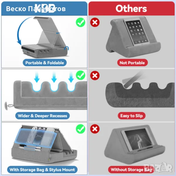 - 【Широка съвместимост】 Държачът за възглавница iPad за таблет е подходящ за всички 4-13" таблети и други устройства, като например съвместим с iPad 9,7 инча, iPad 10,2" 2019, iPad Pro 12,9", iPad mini 2 3 4 5 Wi-Fi, iPad Air 2, iPhone 14 13 12 11 Pro Max, iPhone 11, Surface Pro, Galaxy Tab S8, S7, A8, A7, Switch, книги и др.