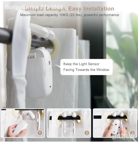 - Мощен живот на батерията: Оборудвана с мощен мотор, електрическата машина за отваряне на завеси може да поддържа максимално натоварване от 10 кг. Предлага се с вградена литиева батерия от 4000 mAh, която може да се зарежда през порта за зареждане Type-C, достигайки пълно зареждане за 5-6 часа. Едно зареждане може да поддържа до 6 месеца употреба, като гарантира стабилна работа на вашите завеси без необходимост от често зареждане. Позволете на този асистент за завеси да създаде спокойна жизнена среда за вас.