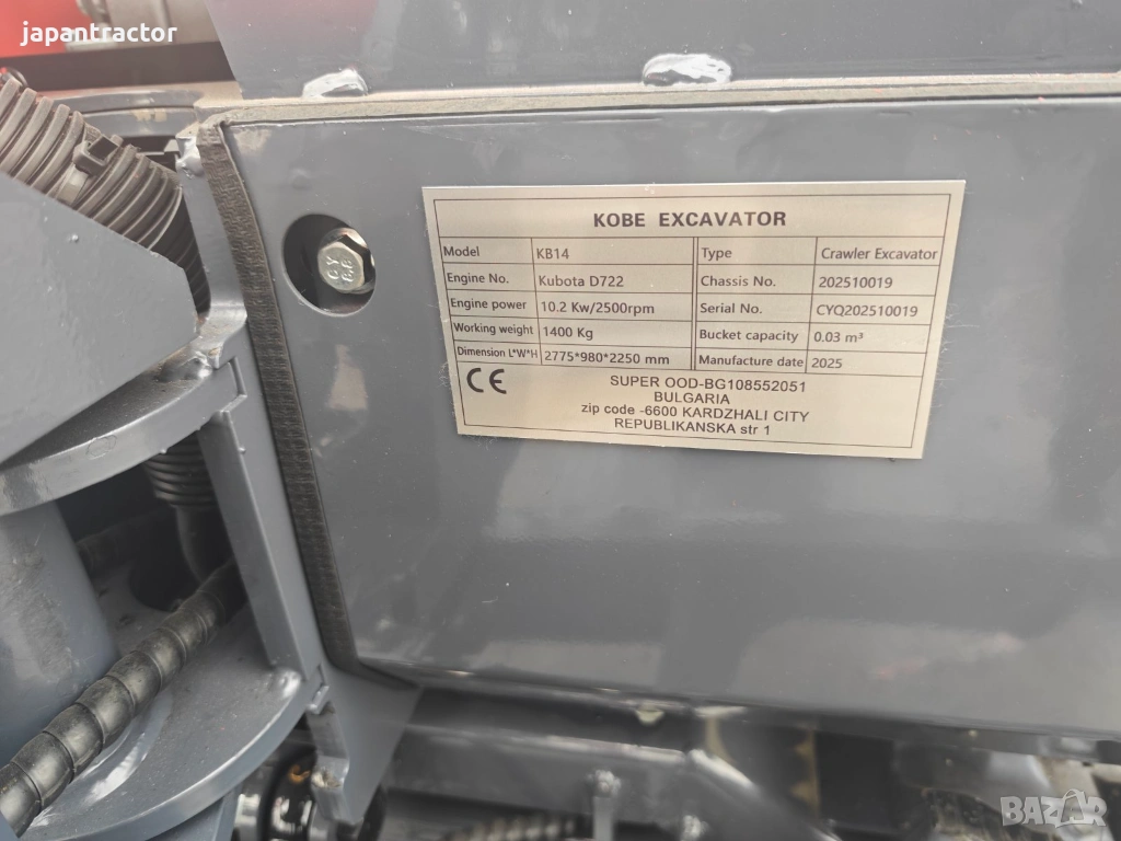 Директен вносител на KOBE KOBELCO 1, 6 тона със джойстици. Чисто нови минибагери със японски двигател Kubota -дизел 3 цилиндъра, водно охлаждане. охлаждане на маслото Безплатен транспорт ца цялата страна, кофа 40см, линия за чук и друг инвентар, задвижващи мотори и хидромотор EATON USA , обявената цена е БЕЗ ДДС, подарък зъб за чистене на камъни и боклуци.