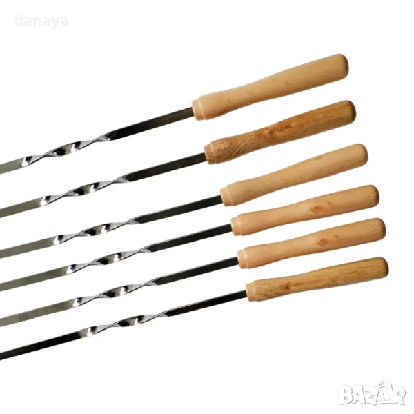 шишове за скара и барбекю с дървена дръжка. Всеки комплект включва 6 броя шиша. Всеки шиш за барбекю има удобна дървена дръжка, която позволява лесно захващане. Общата дължина на шишовете е 50см – наистина дълги шишове!