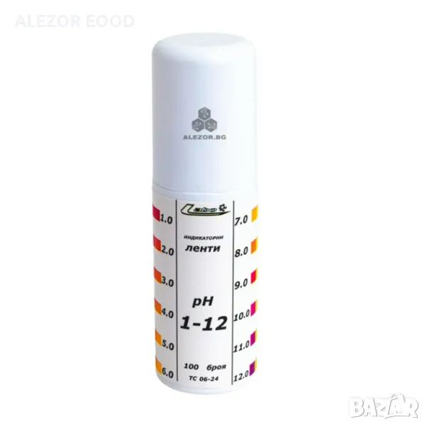 Индикаторни ленти за измерване на pH от 1 до 12 с трицветен индикатор.