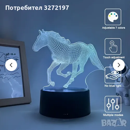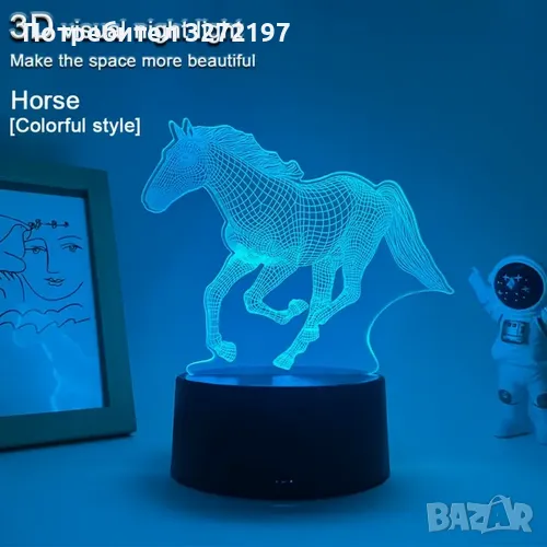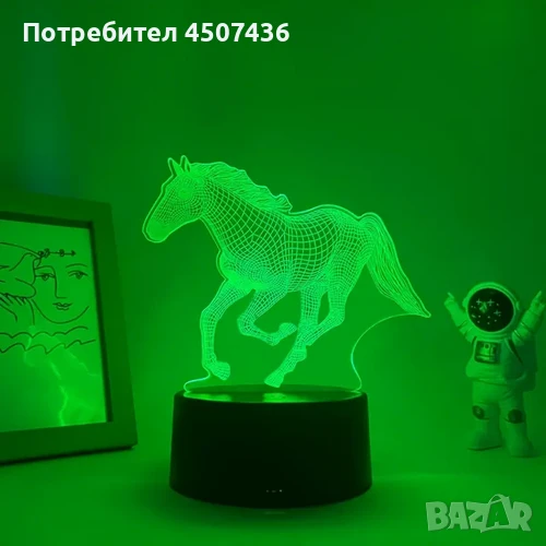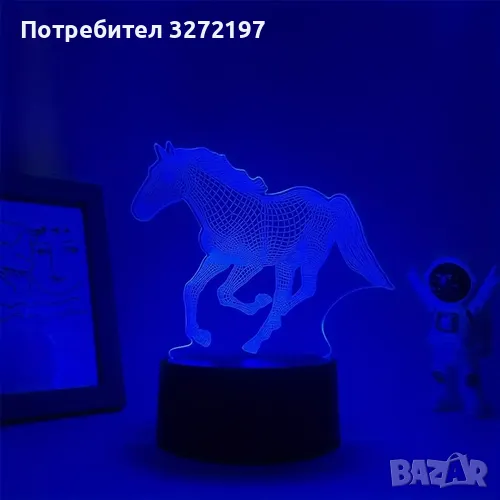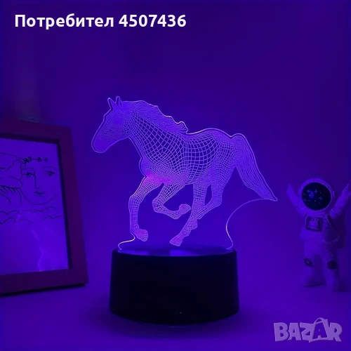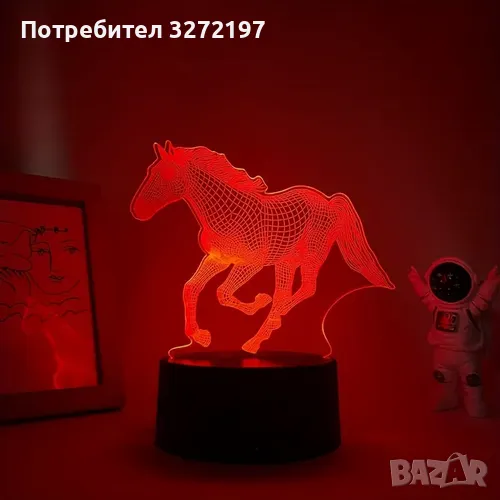 Нощна Лампа с 3D Кон и LED Осветление