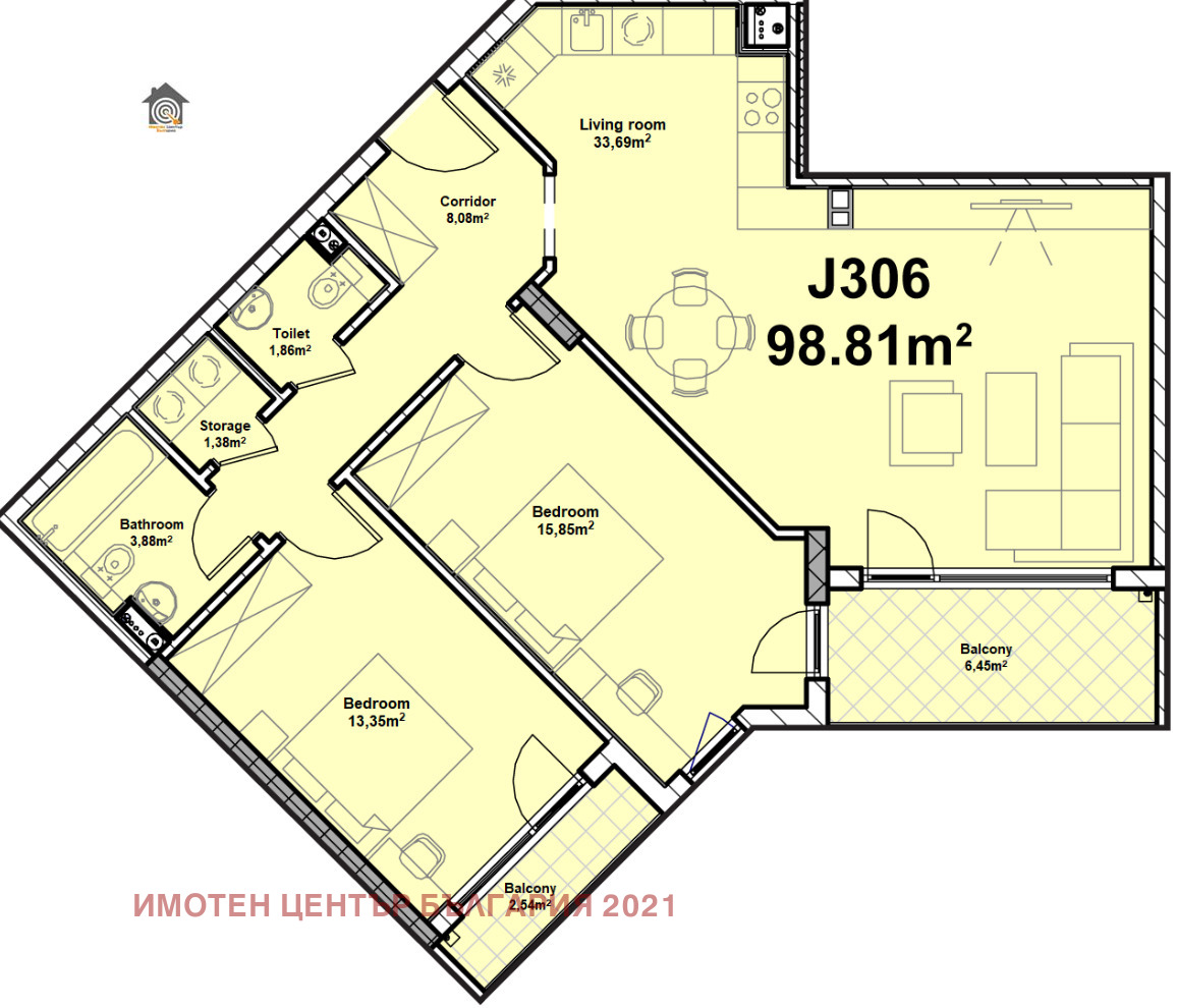 Апартамента е разположен на 4 ти етаж с чиста площ от 99кв.м .